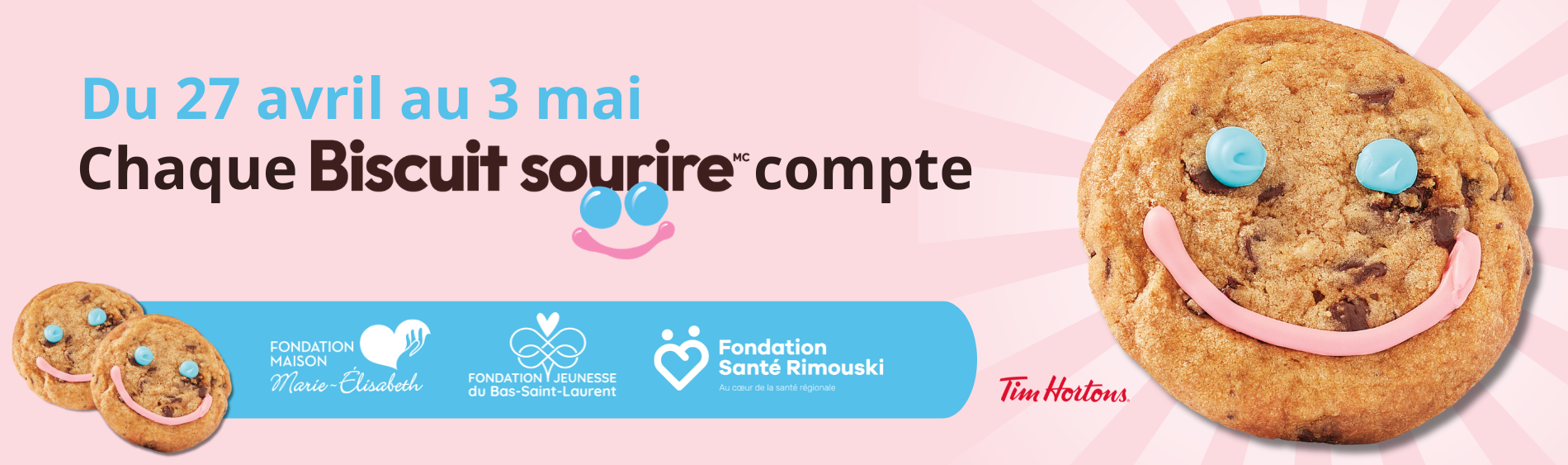 Du 27 avril au 3 mai, retrouvez les irrésistibles biscuits Sourire dans les quatre restaurants Tim Hortons de Rimouski.