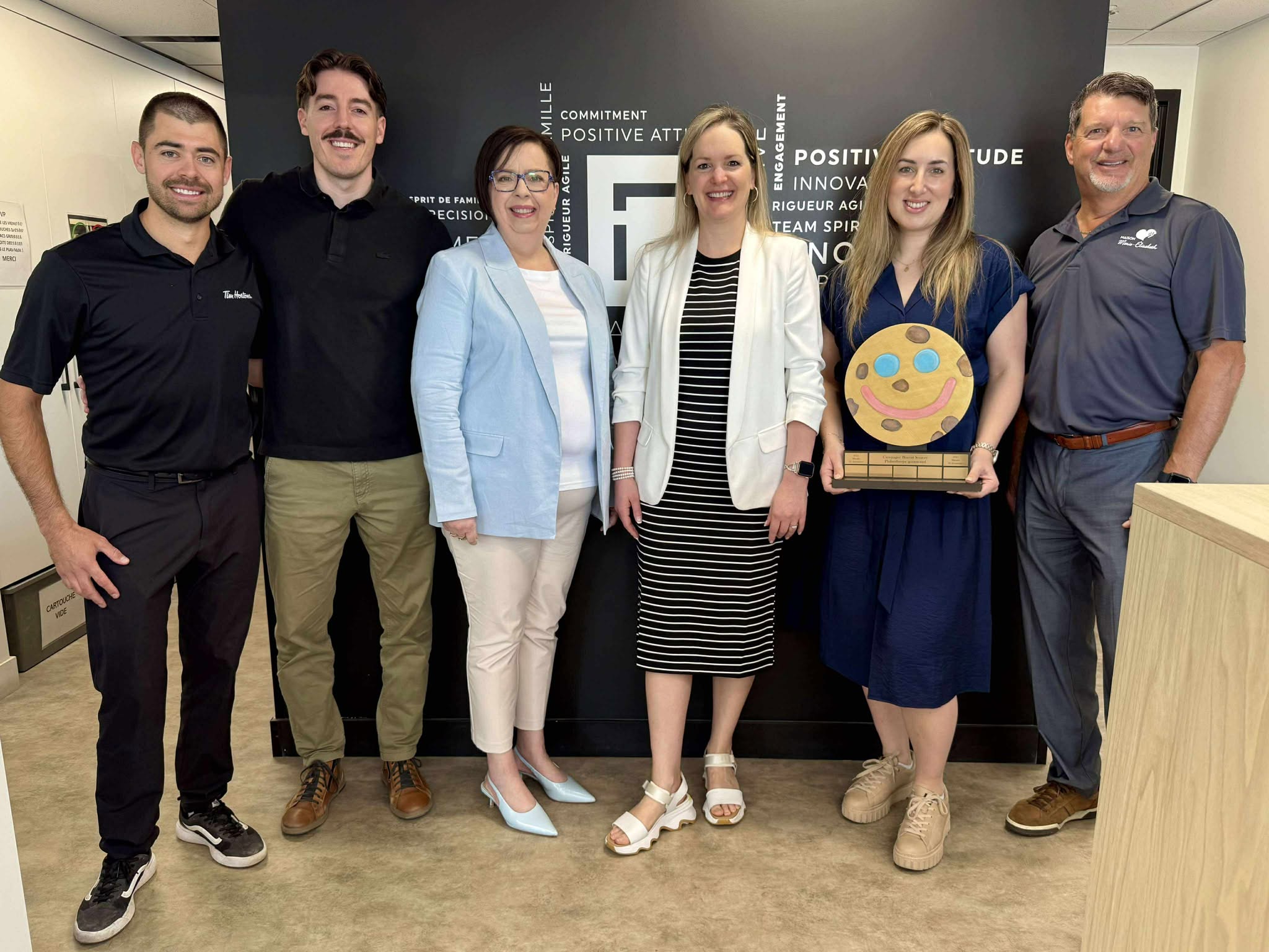 Pour une troisième année, l’entreprise qui aura commandé en ligne le plus grand nombre de biscuits se verra remettre le trophée du Méga Biscuit Sourire. Une belle occasion de mettre en valeur l'engagement de votre entreprise et de rayonner sur nos médias sociaux. L'an dernier, pour une deuxième année consécutive, c'est MIRALIS qui a remporté les honneurs.